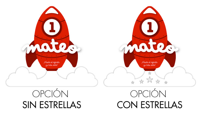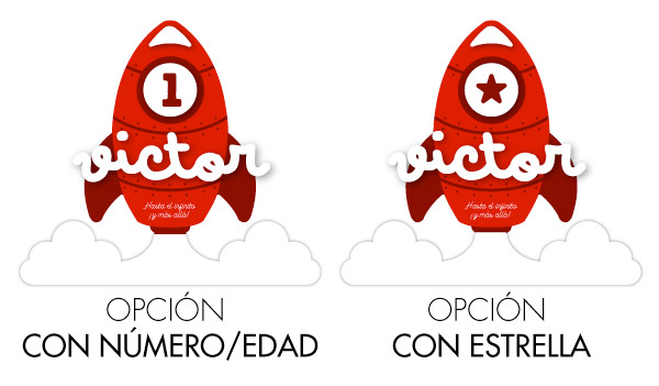 La frase siempre irá en la base del cohete tal y como muestran las imágenes. Si quieres el topper sin frase deja este campo vacío.